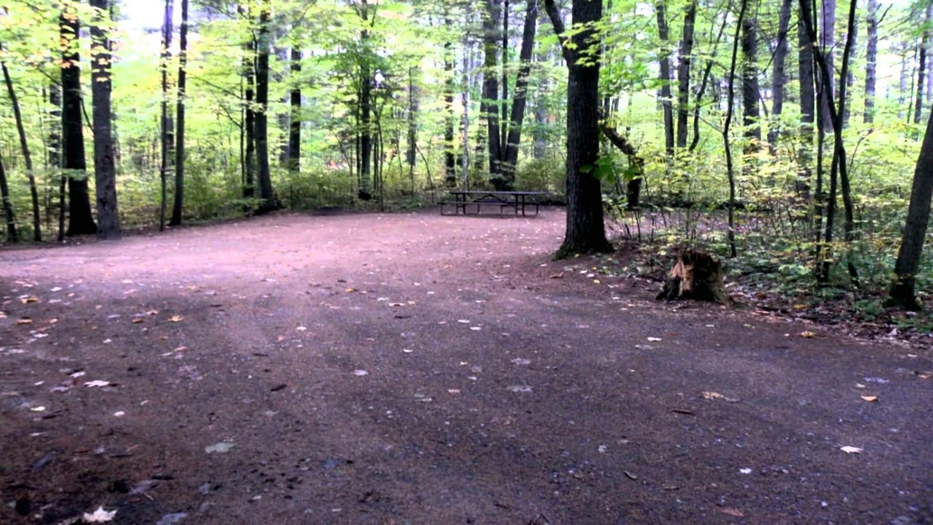A dirt road in the middle of a wooded area.